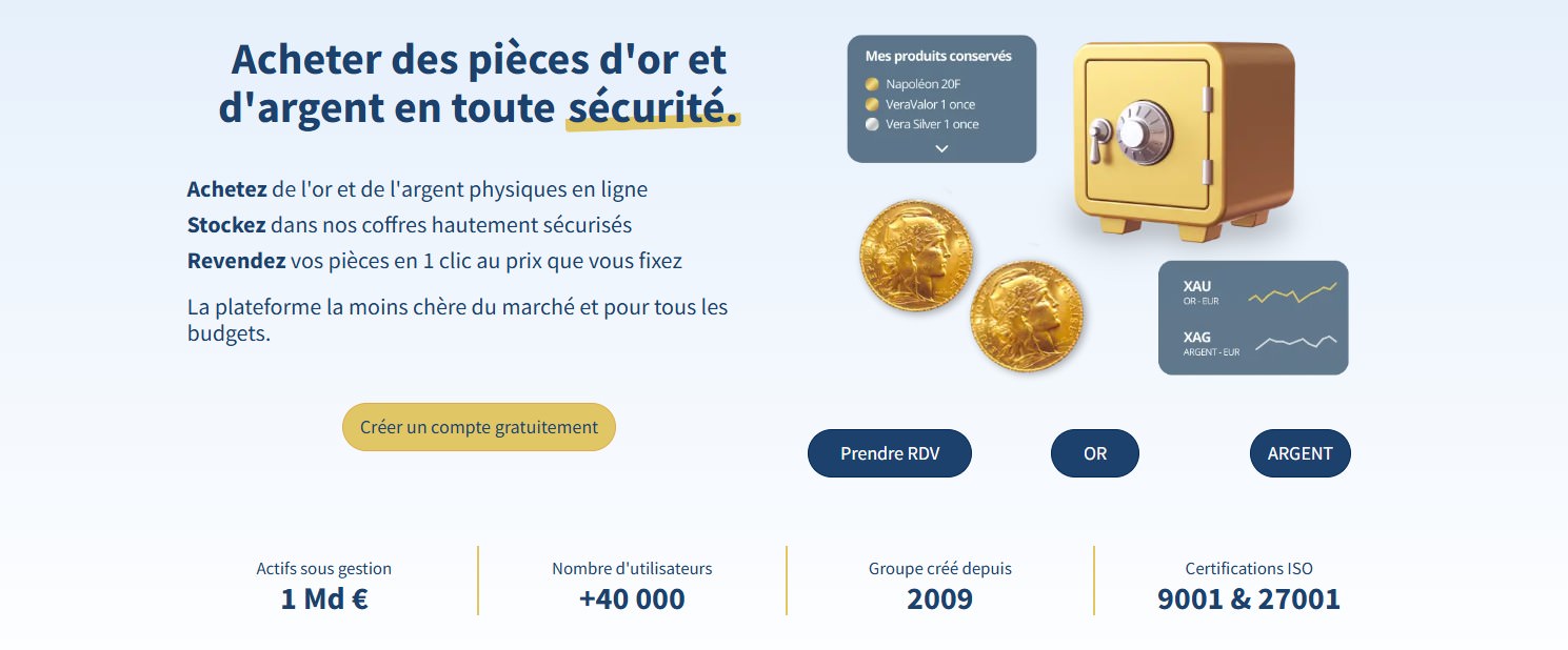 La plateforme est certifiée ISO 9001, gage d’un processus qualité rigoureux. Elle gère également plusieurs filiales : VeraCash (carte de paiement adossée à l’or), VeraValor (maison de frappe de monnaies privées), et même une plateforme crypto (Crypcool).economiser-mon-argent+1